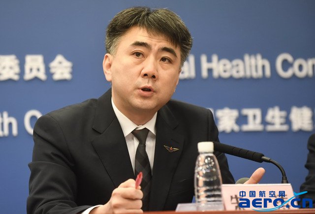 國家衛(wèi)生健康委今天下午召開新聞發(fā)布會,民航局飛行標(biāo)準(zhǔn)司司長朱濤在會上發(fā)言。攝影/新京報記者 吳寧
